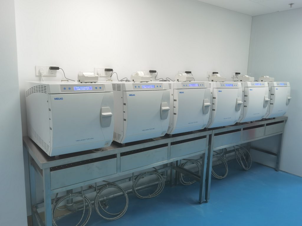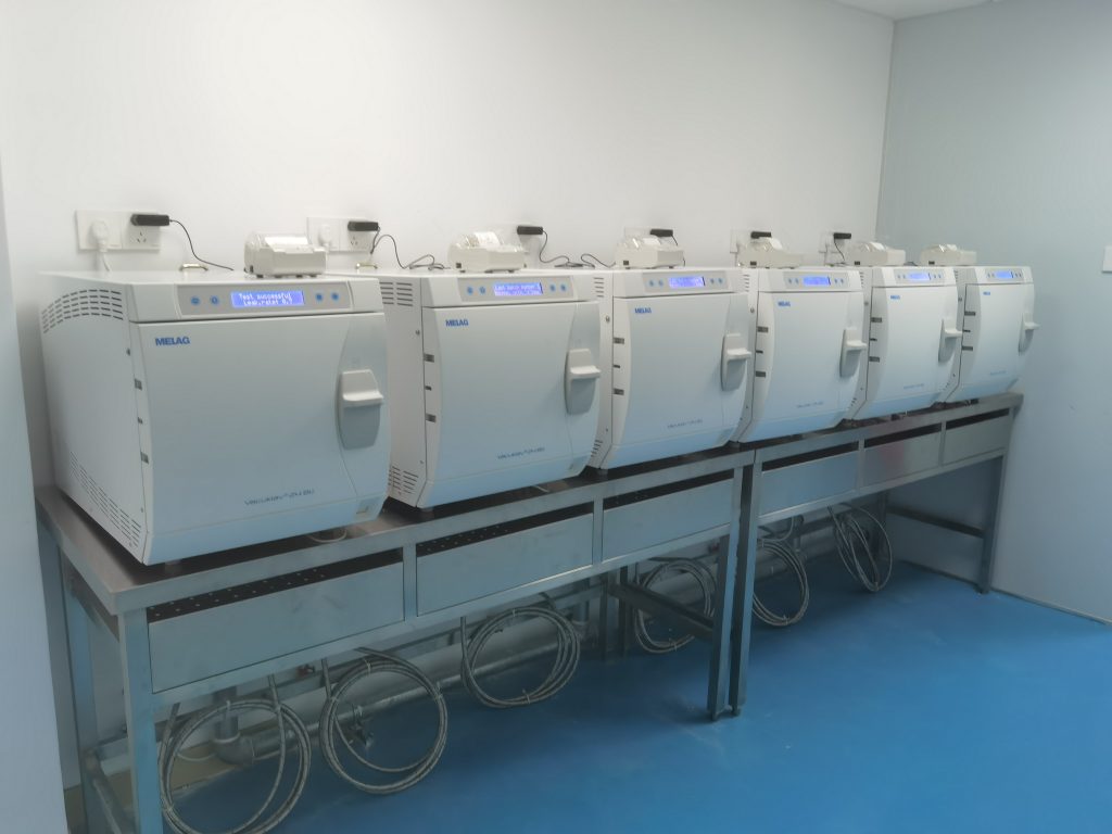 广州市珠海市口腔医院于2023年8月在灭菌区域配套安装了德国MELAG台式蒸汽灭菌器6台Vacuklav 24BL+和德国MIELE 清洗消毒机 1台 PG8581。