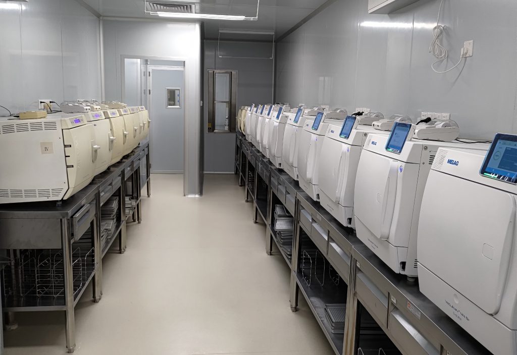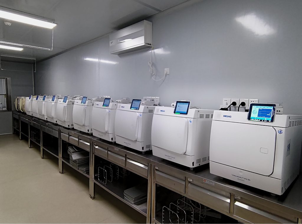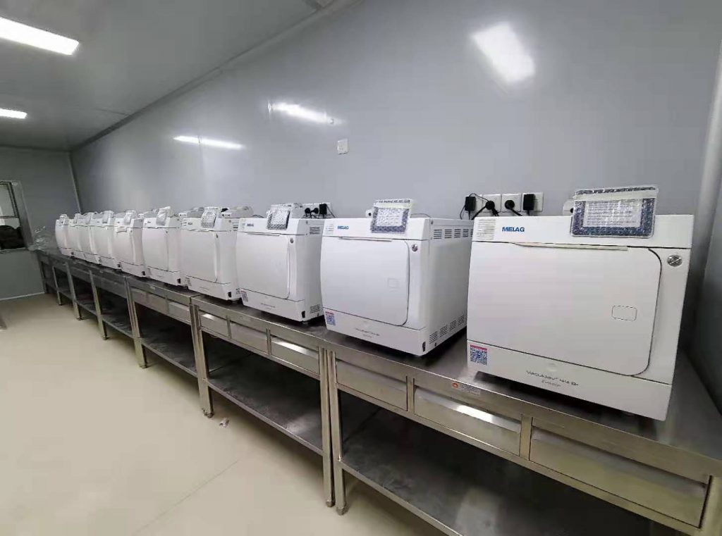 该中心灭菌区域配套安装了德国MELAG(美莱格)台式蒸汽灭菌器20台,其中经典的Vacuklav 24B+和最新技术的Vacuklav 44B+台式蒸汽灭菌器各10台。